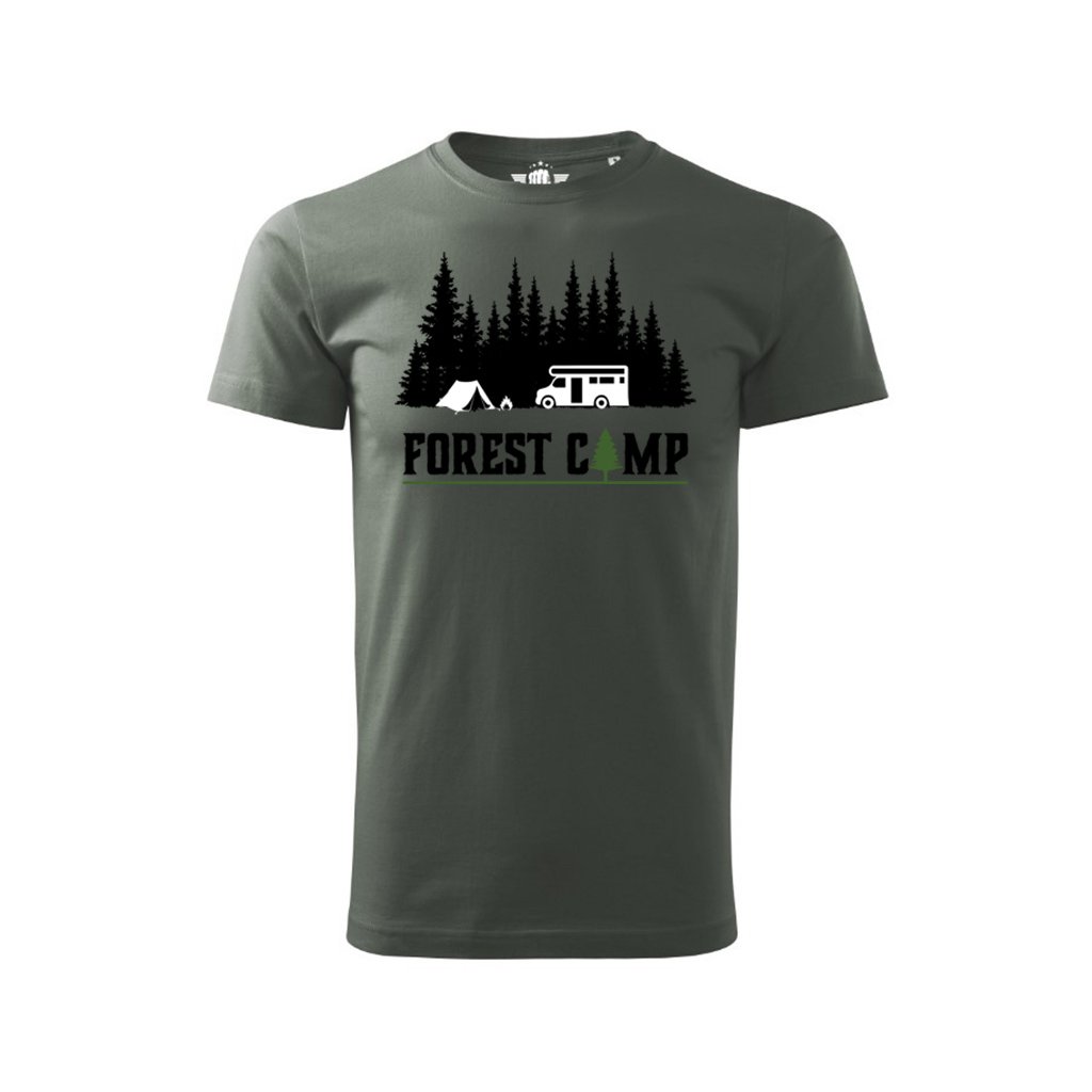 Cotton T-shirt with a weight of 160g/m2 with an original motif FOREST CAMP T-shirt for ARMY enthusiasts, but also for lovers of retro motifs.